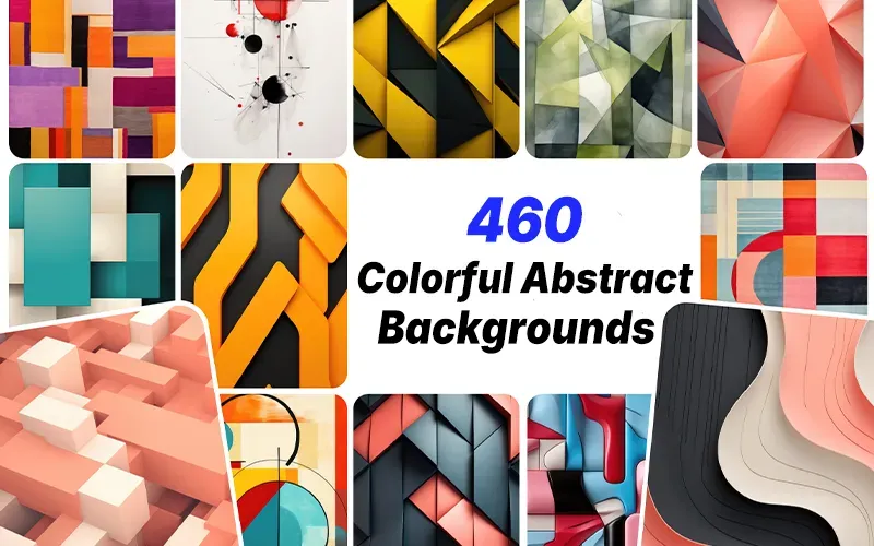 This bundle includes 460 high-resolution, colorful abstract background images in JPG format. The images include various artistic styles, from geometric abstractions to modernist collages and boho tribal art.